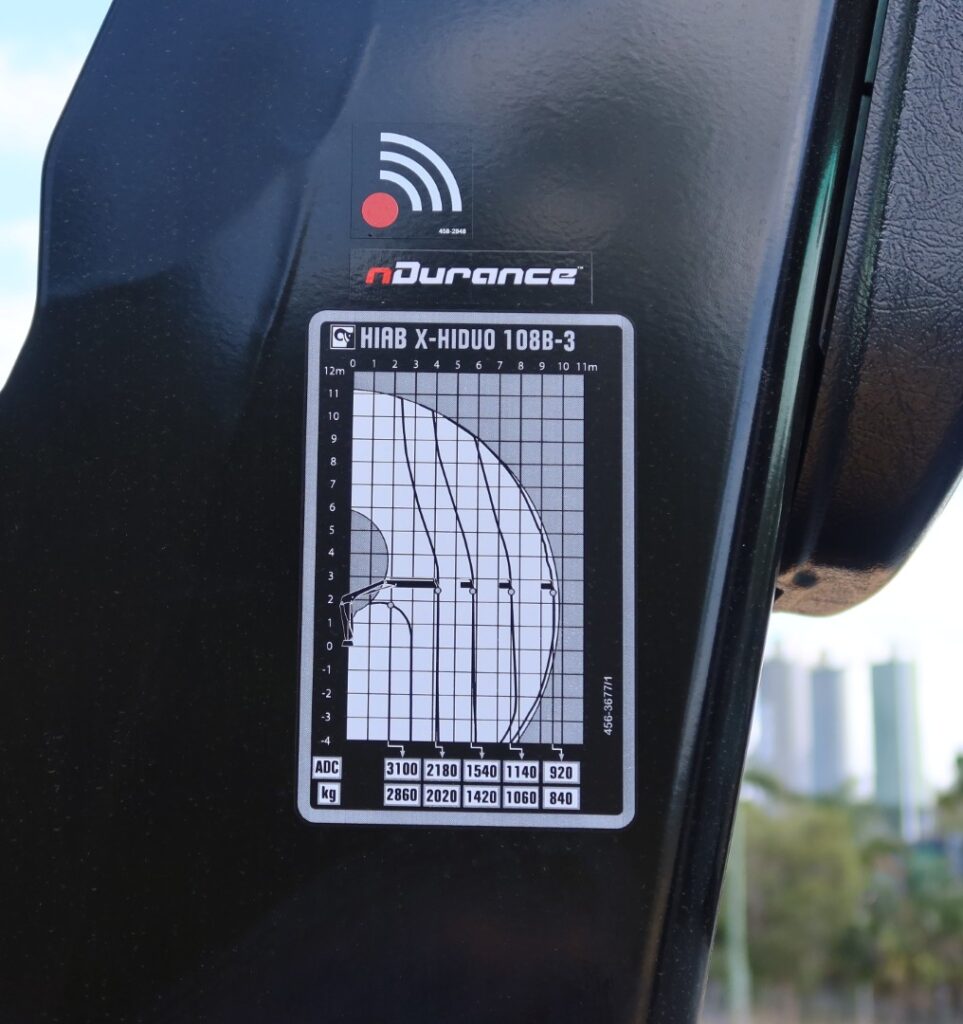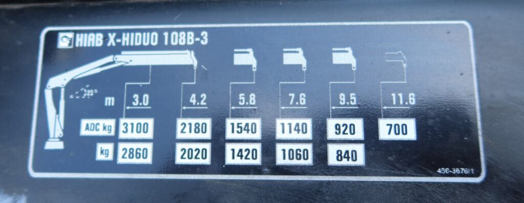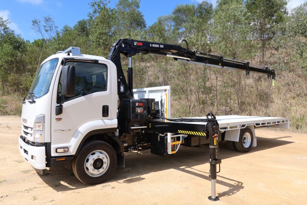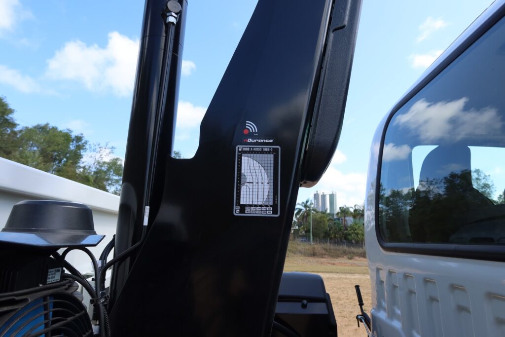 Fitted with NEW **REMOTE CONTROL OPERATED** Hiab X108 B3 Hi Duo crane (3 x hydraulic extensions). Crane mounted directly behind Cabin.