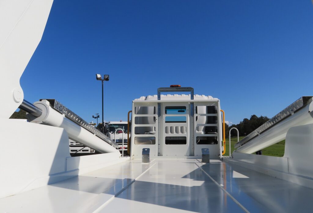 - DECK DETAILS: 5mm steel deck with 2x 100 x 10mm steel wear strips with Integrated multiple position bin stops