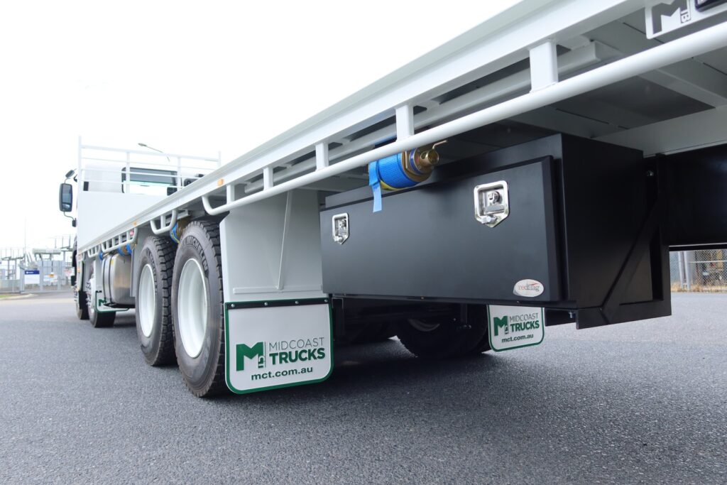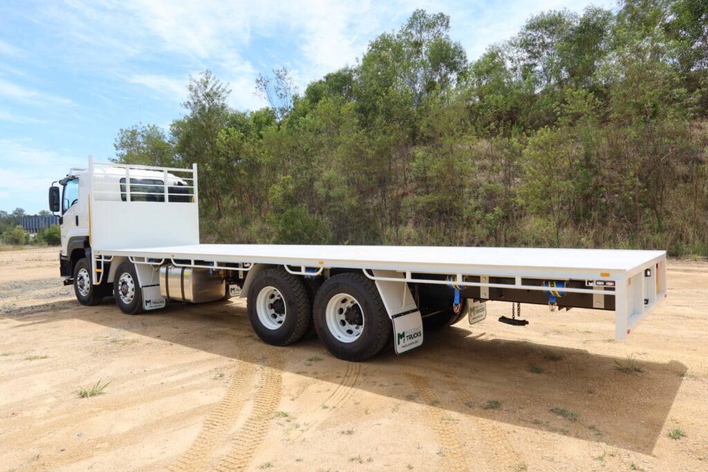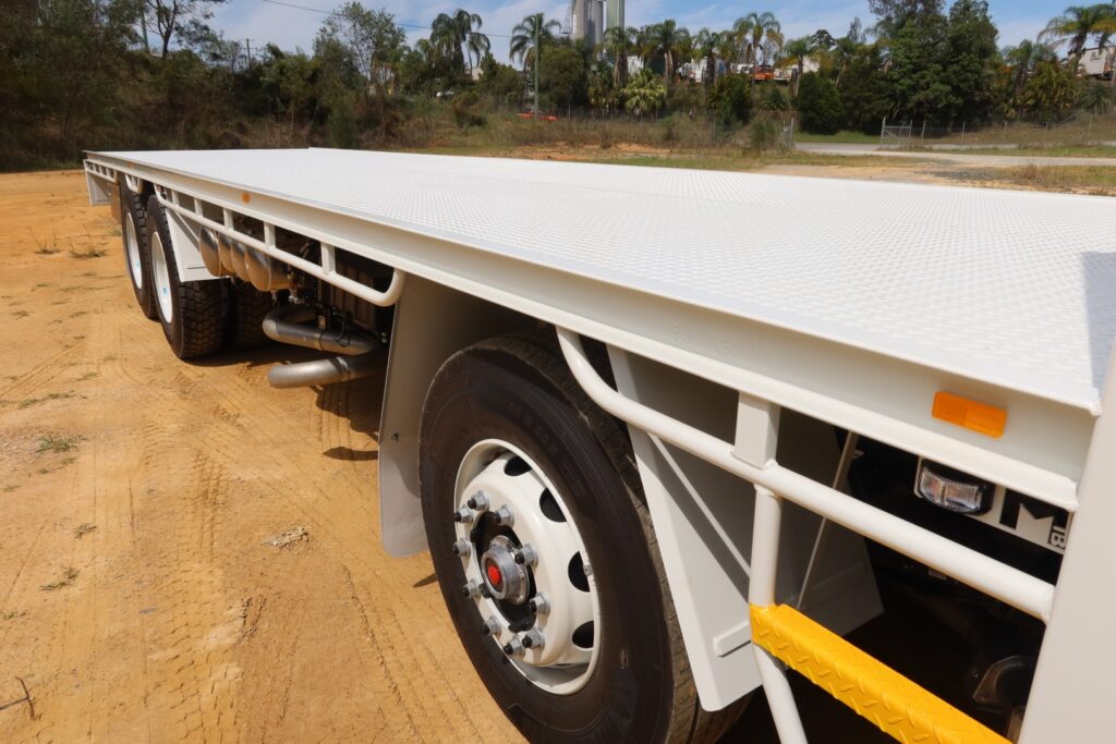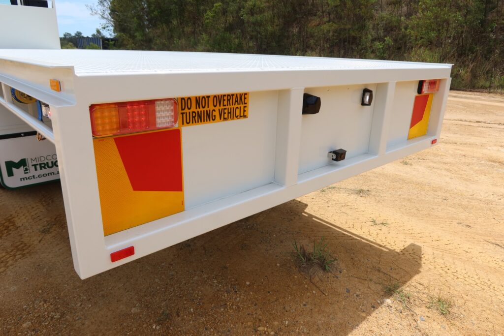 Fitted with NEW Midcoast Trucks steel tray (Internally approx 9.6m L x overall 2.5m MAX WIDTH) with a 5mm thick steel checker-plate floor.