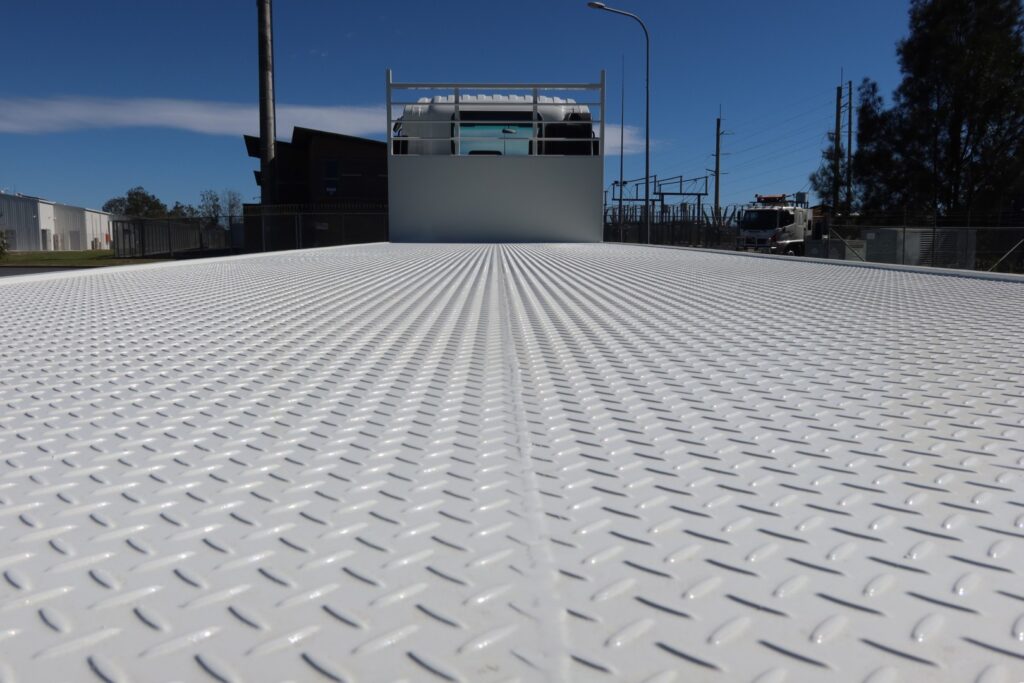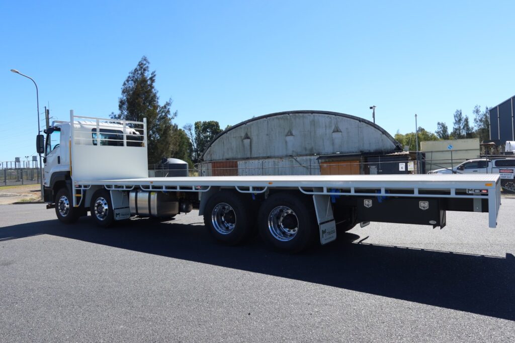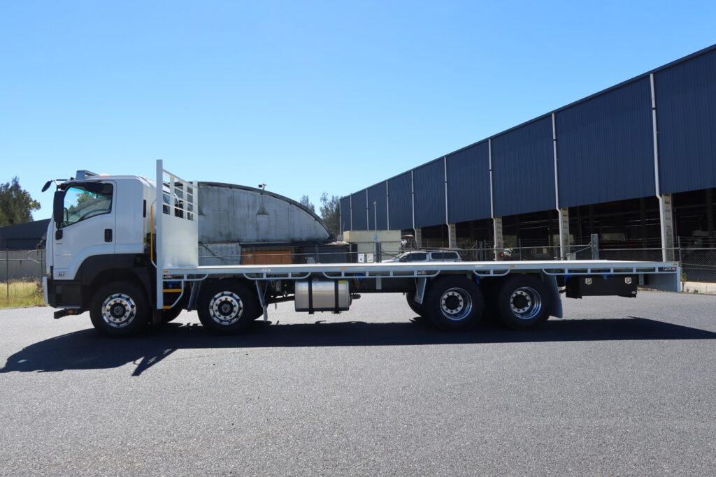Fitted with NEW Midcoast Trucks steel tray (Internally approx. 9.6m L x overall 2.5m MAX WIDTH) with a 5mm thick steel checker-plate floor.