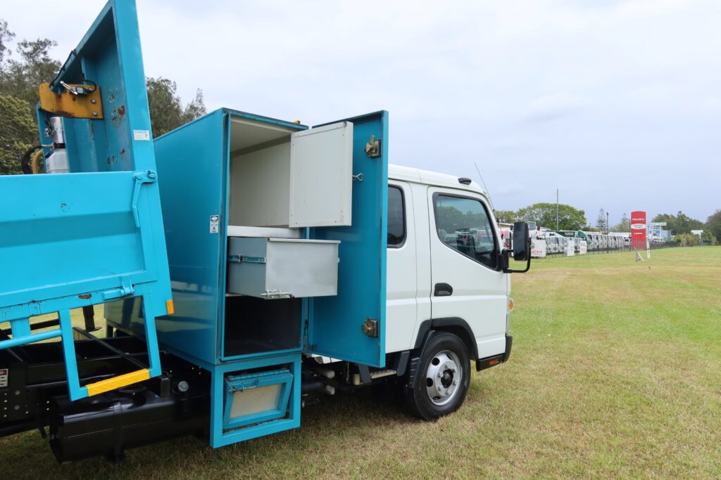Fitted with an M&M Truck Bodies TIPPER BODY (Internally approx 2.95m L x 2.25m W) inc;