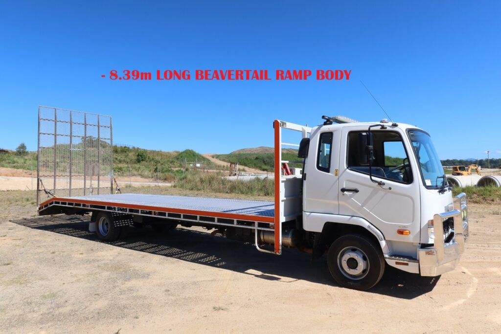 Fitted with a 2016 Prestige Truck Bodies – ‘BEAVERTAIL’ ramp body (Internally approx 8.39m L x Overall 2.5m W) inc;