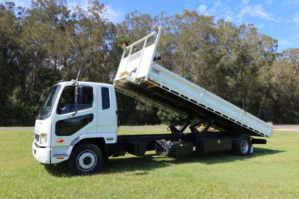 • TILTIP is a versatile, patented truck body that integrates tipping and tilting into a single tray.  Incorporating a 14 degree extendable tray, TILTIP is a faster and safer process of loading and unloading of equipment and machinery.  With TILTIP Design, there are no weight penalties compared with traditional tipper body construction, and TILTIP is far lighter.
