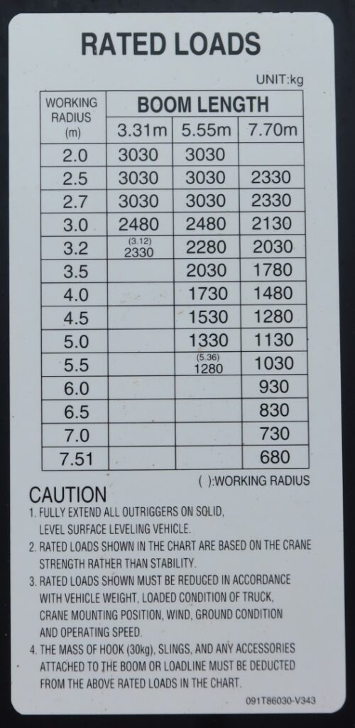 UNIC URW343 E STIFF BOOM CRANE SPECS;