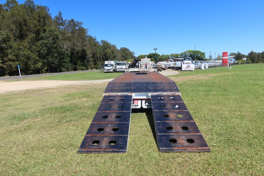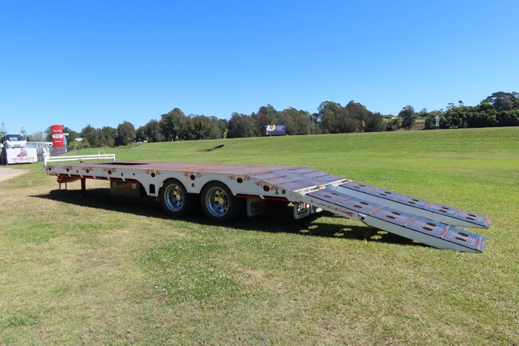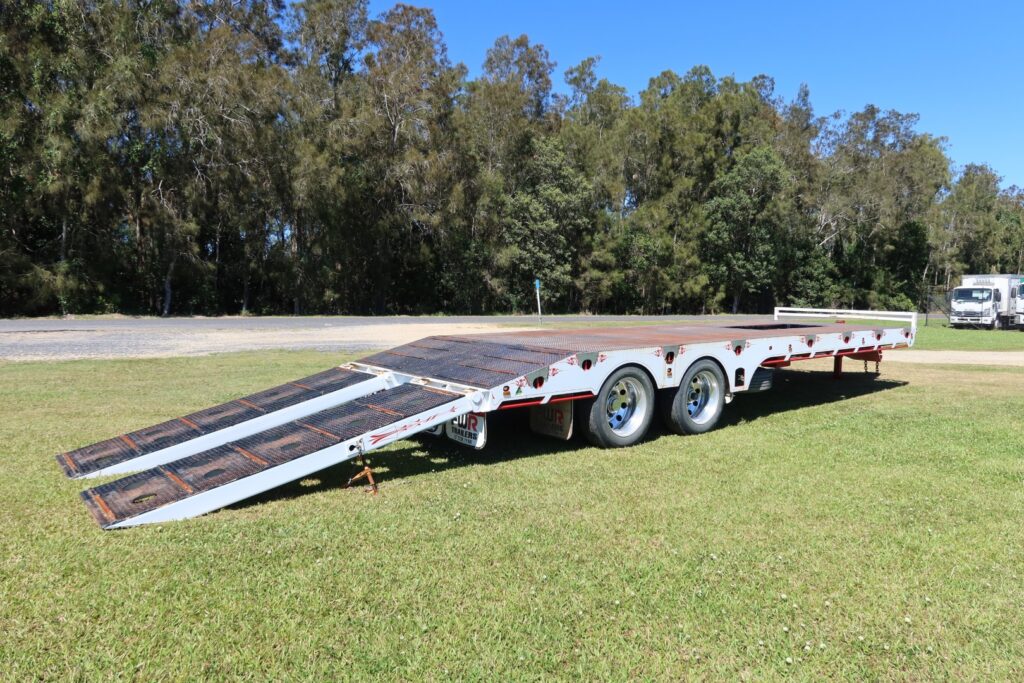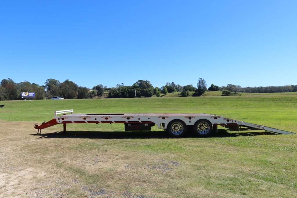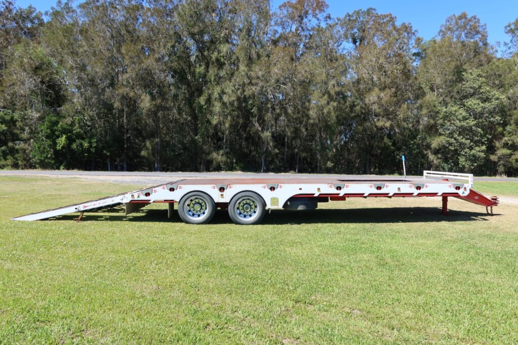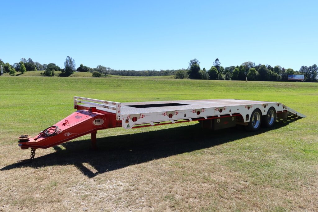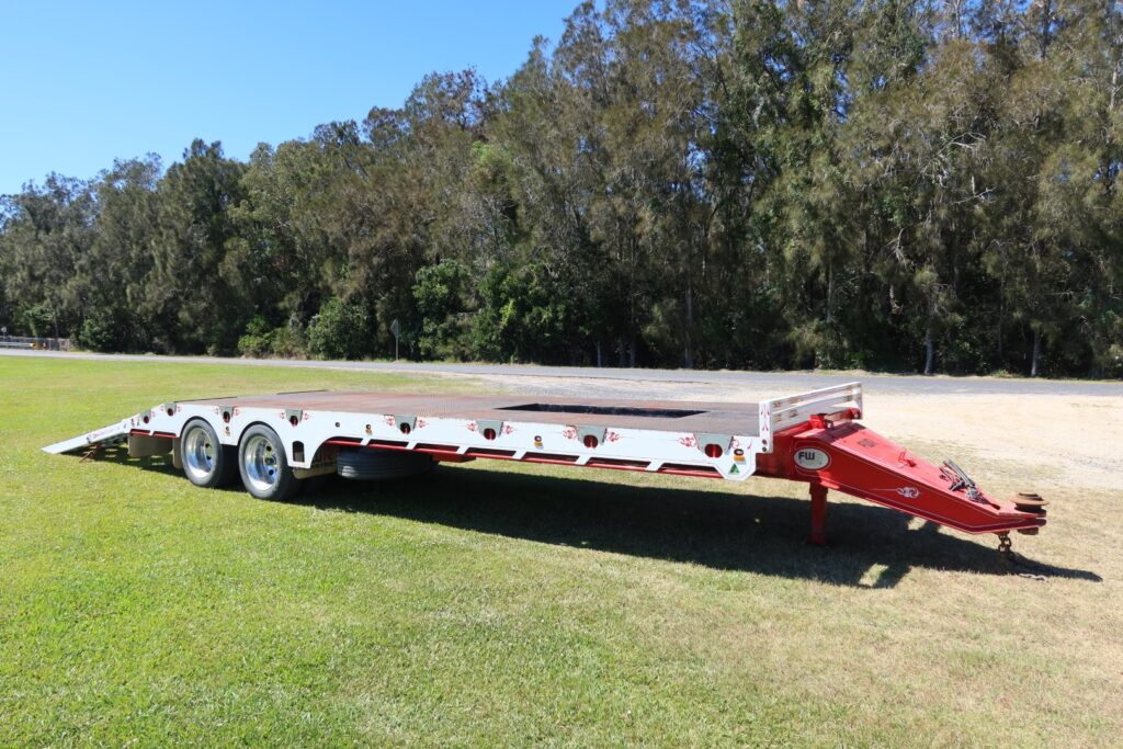 1 x only used 7 / 2021 FWR Elite Tandem Axle Tag Trailer (Deck is approx. internally 7.5m of FLAT DECK + 1.05m of SLOPED REAR SECTION = approx. 8.55m x Overall 2.48m WIDE)