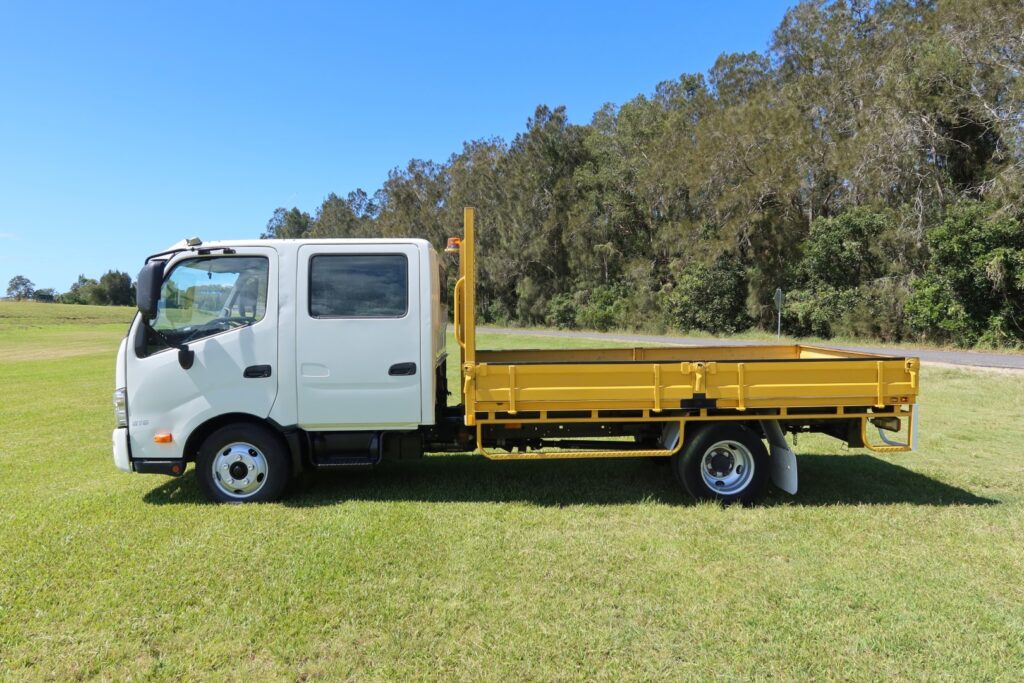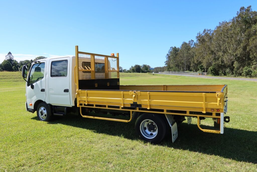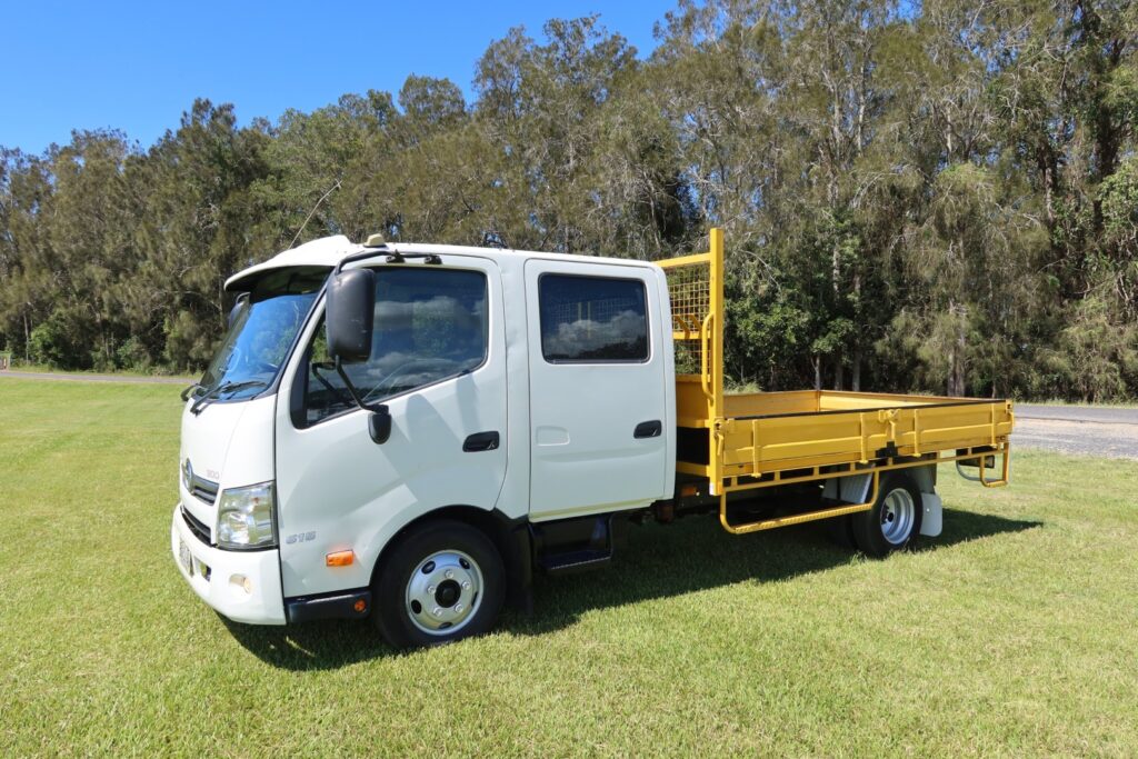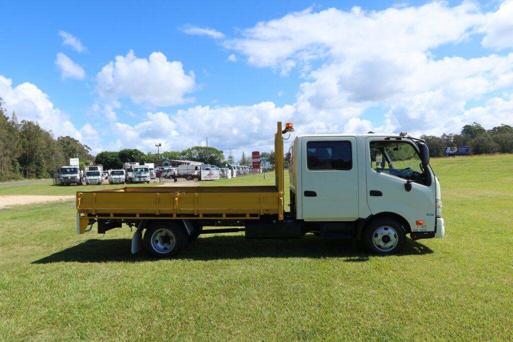 1 x only used 01 / 2013 Hino 300 Series – 616 Auto Crew Cab (DUAL CAB) – 4.0 litre, turbo / intercooled, 160hp, 6 speed AUTOMATIC inc air conditioning and a windscreen sun-visor.