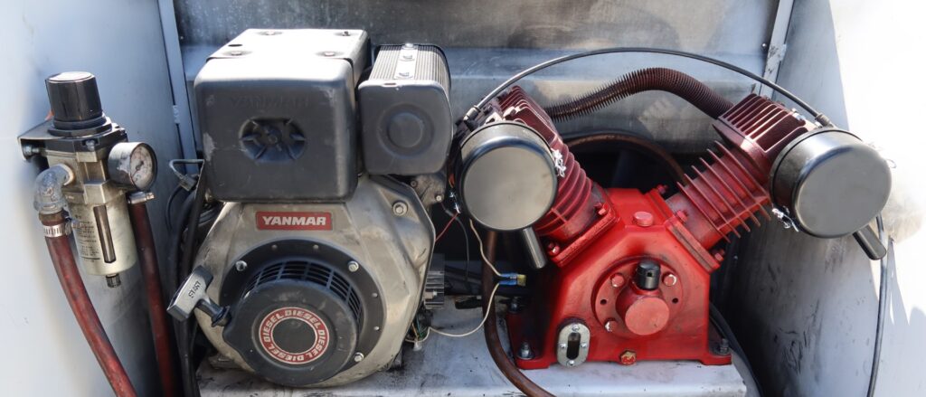 -Twin head air compressor – powered by a Yanmar diesel motor inc remote start