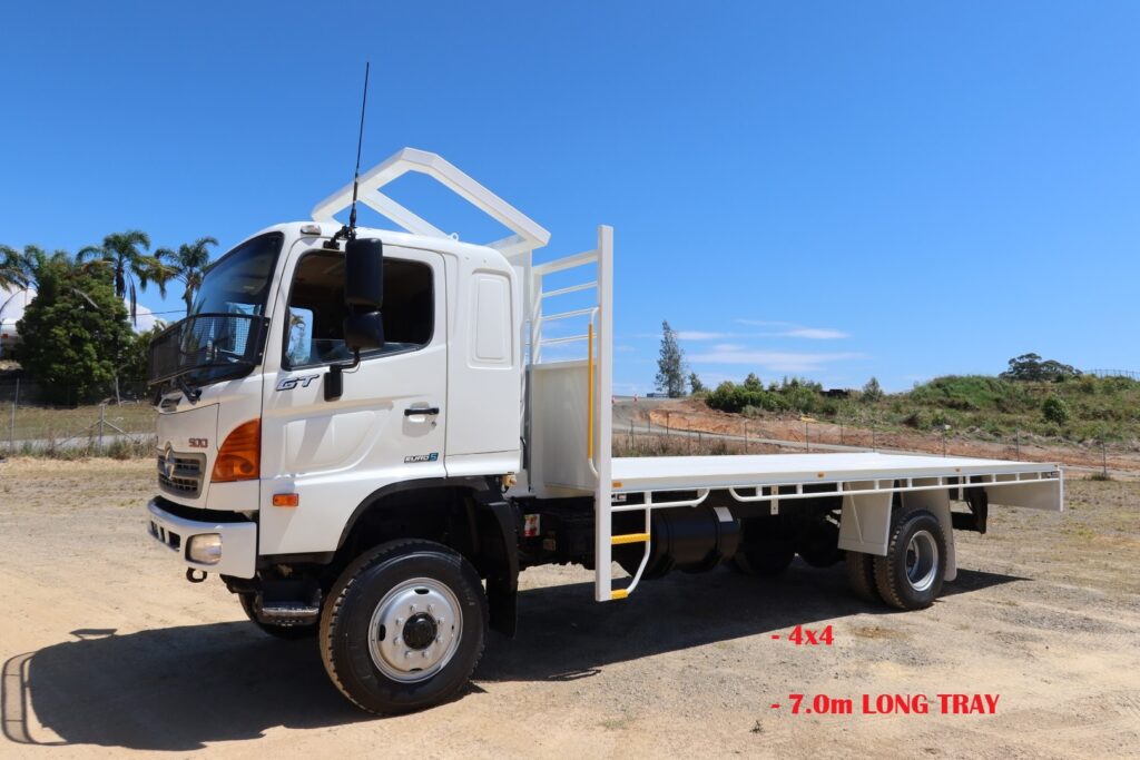 1 x only used 02 / 2012 Hino 500 Series – 1322 GT 4×4 (4WD) – 7.9 litre, turbo / intercooled, 220hp, 6 speed manual inc air conditioning and a windscreen stone guard.