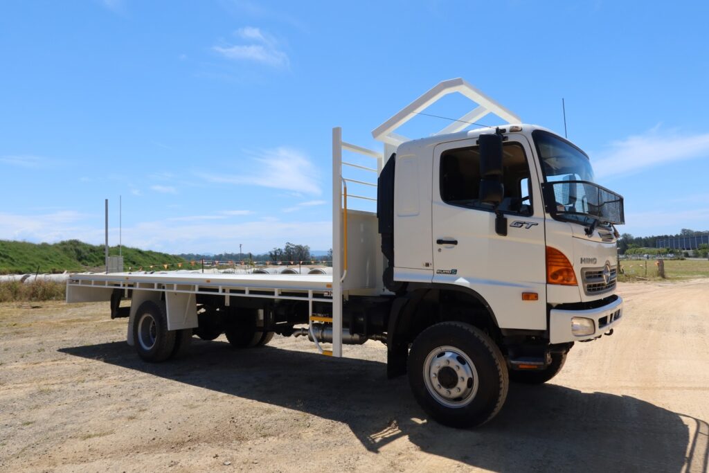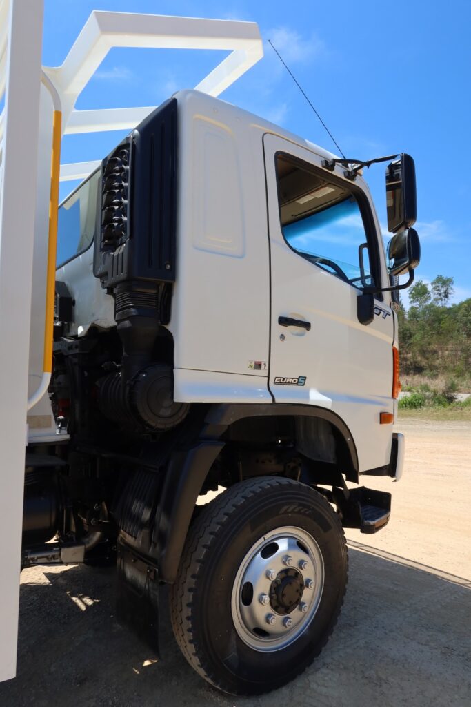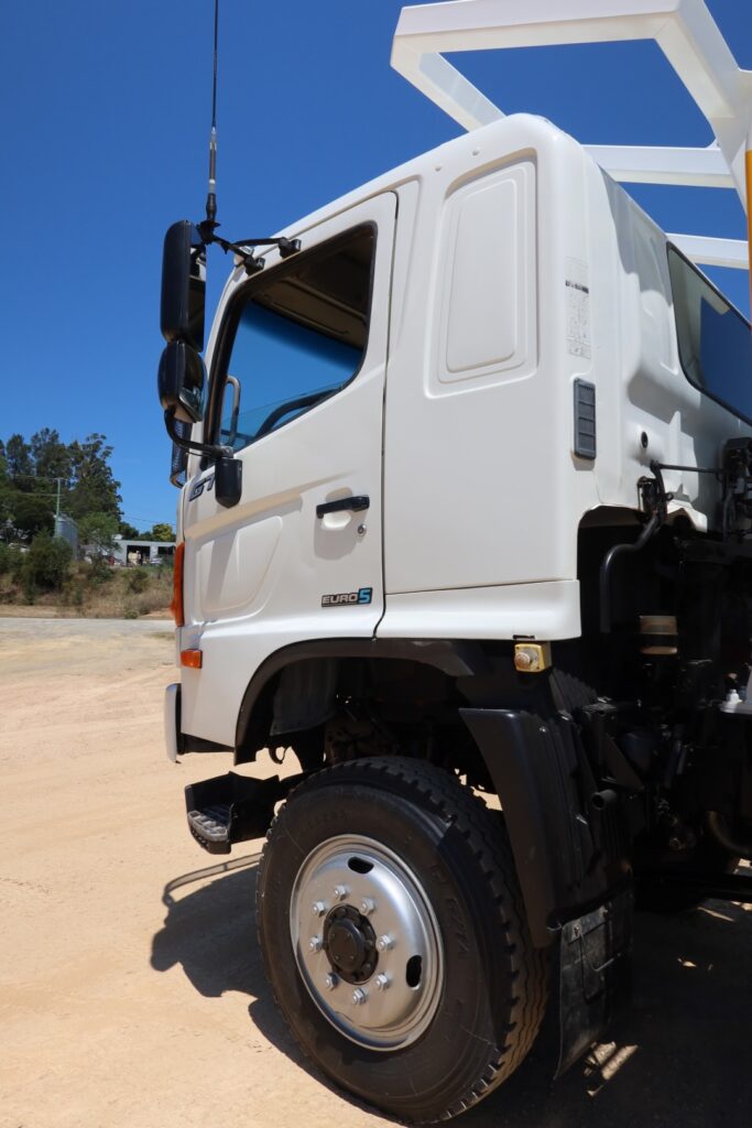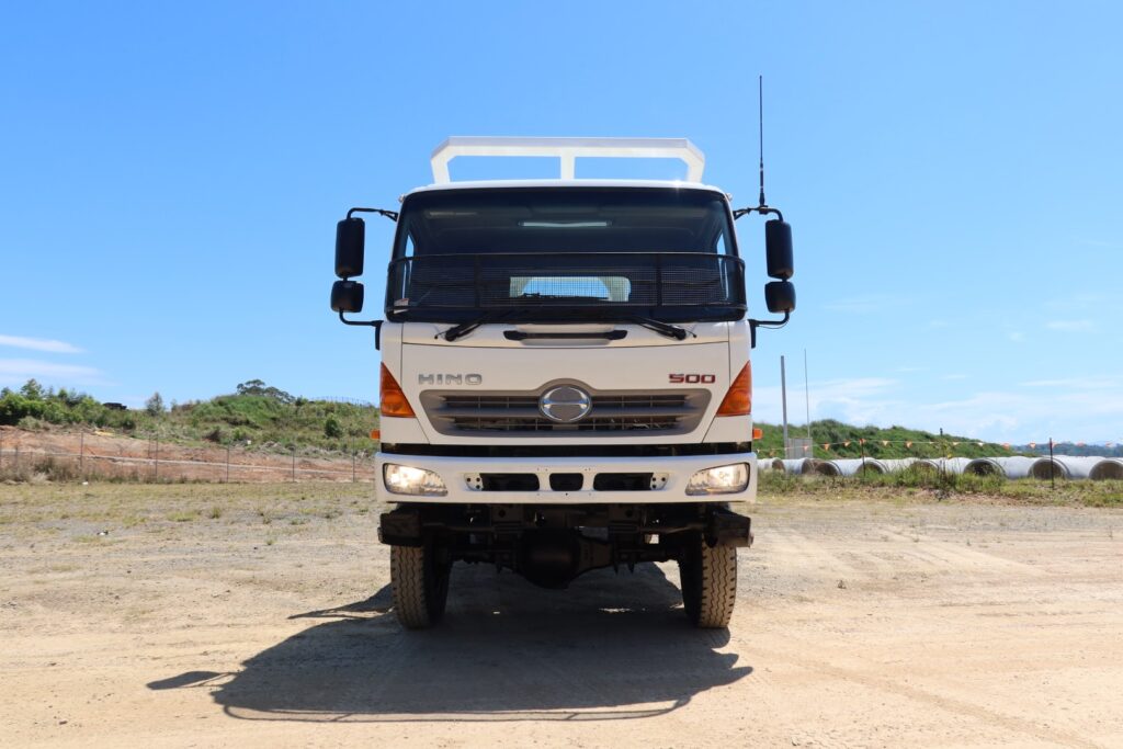 1 x only used 02 / 2012 Hino 500 Series – 1322 GT 4×4 (4WD) – 7.9 litre, turbo / intercooled, 220hp, 6 speed manual inc air conditioning and a windscreen stone guard.