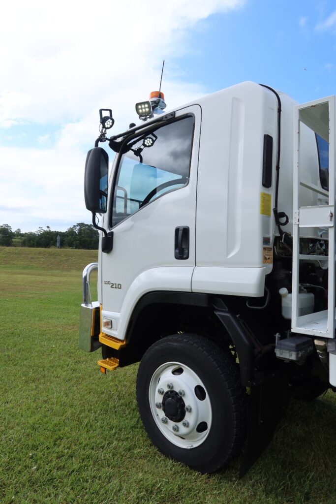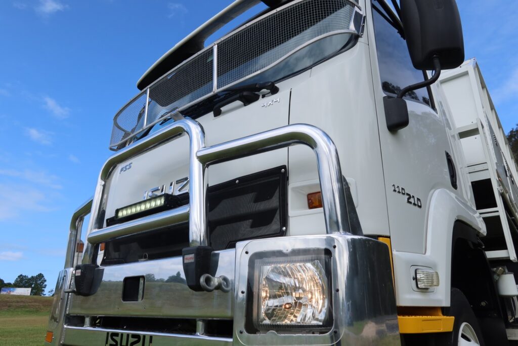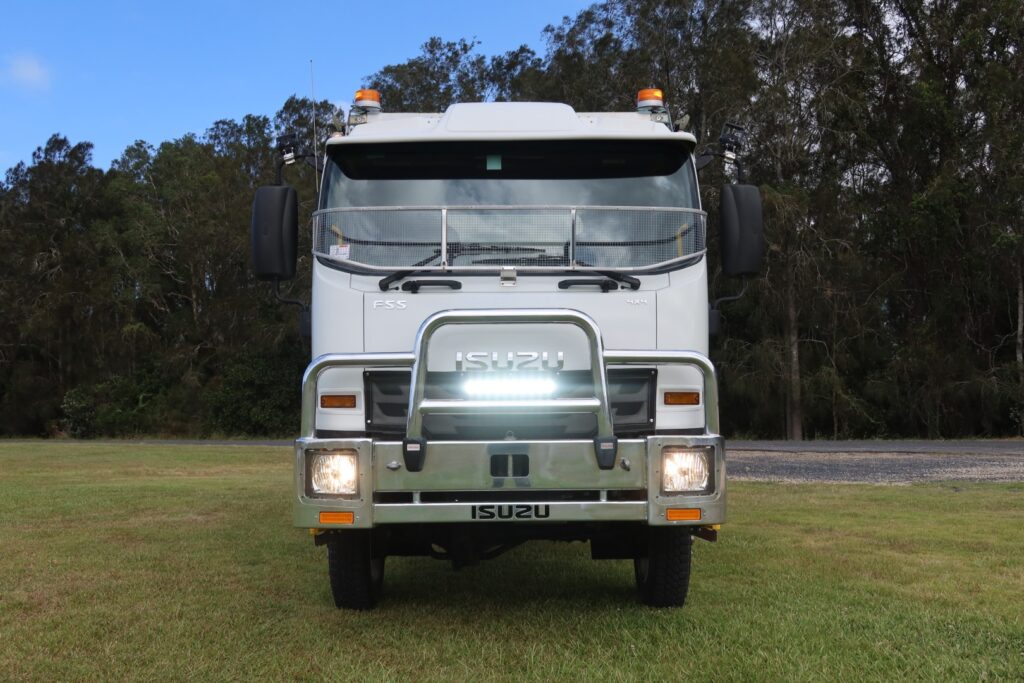 1 x only used 11 / 2017 Isuzu FSS 110-210 4×4 (4WD) – 5.2 litre, turbo / intercooled, 210hp, 6 speed manual inc air conditioning, a Uniden UHF radio inc wireless hand piece, an Isuzu alloy bullbar, windscreen sin visor + stone guard, rubber floor mats, 12v Narva power outlet, L.E.D light bar, a Donaldson Top-Spin air intake and an Isri suspension outer passenger seat.