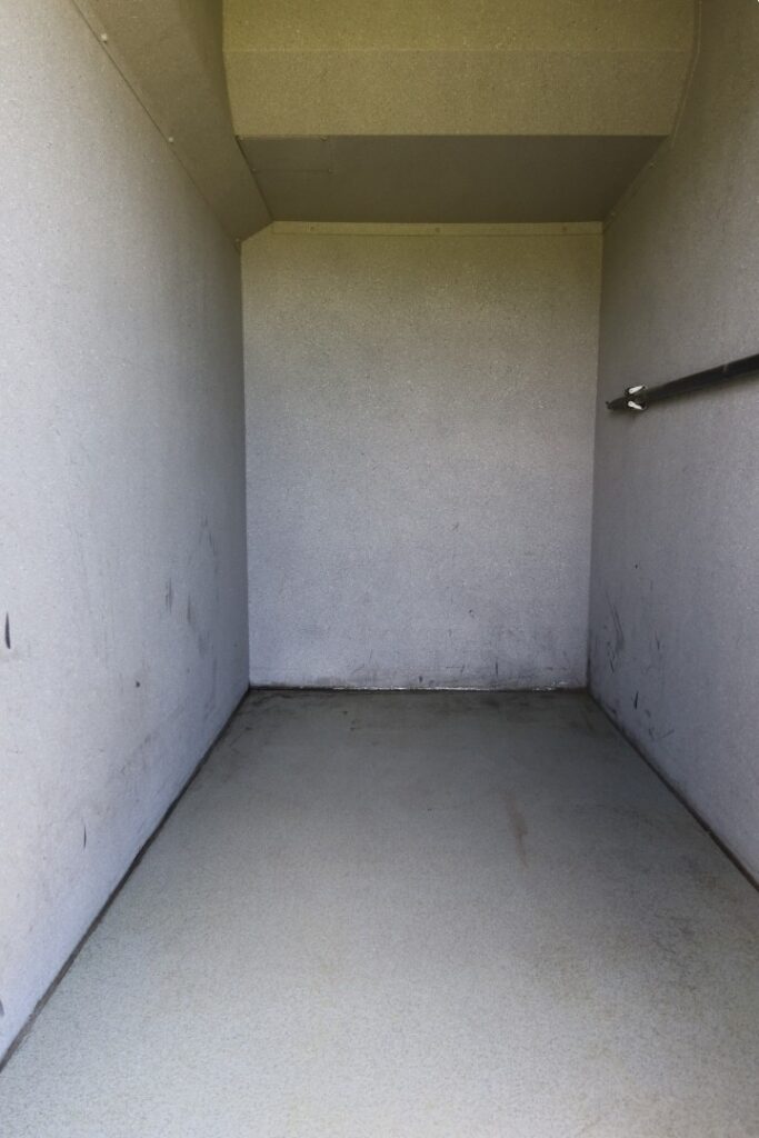 Walk-in luggage storage compartment at rear