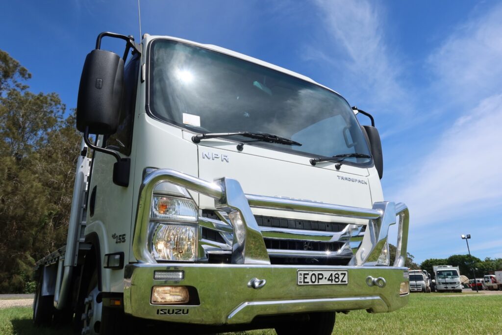 1 x only used 07 / 2022 Isuzu NPR 45-155 MWB Tradepack – 5.2 litre, turbo / intercooled, 155hp, 6 speed manual inc air conditioning, heavy duty ‘canvas’ seat covers, rubber floor mats and an alloy bullbar.