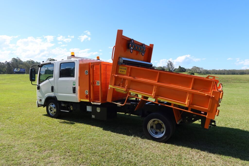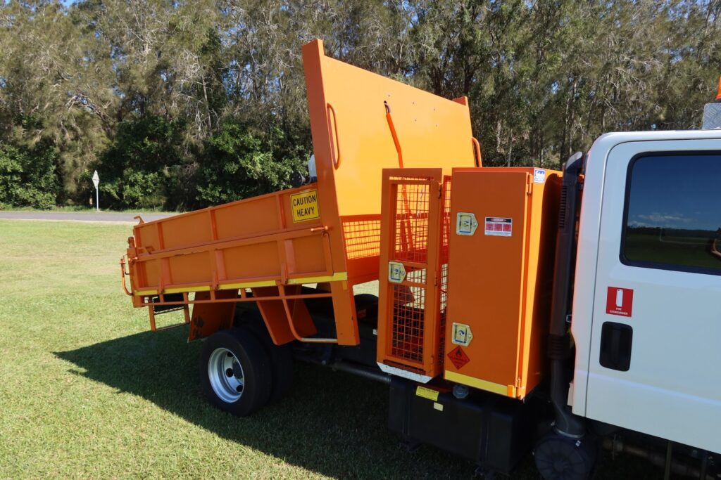 Fitted with a Johnston Truck Bodies – TIPPER BODY (Internally approx 2.64m L x 2.2m W x 300mm High drop-sides + 300mm High side extensions LH / RH sides) inc;
