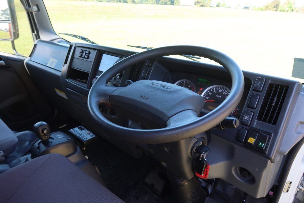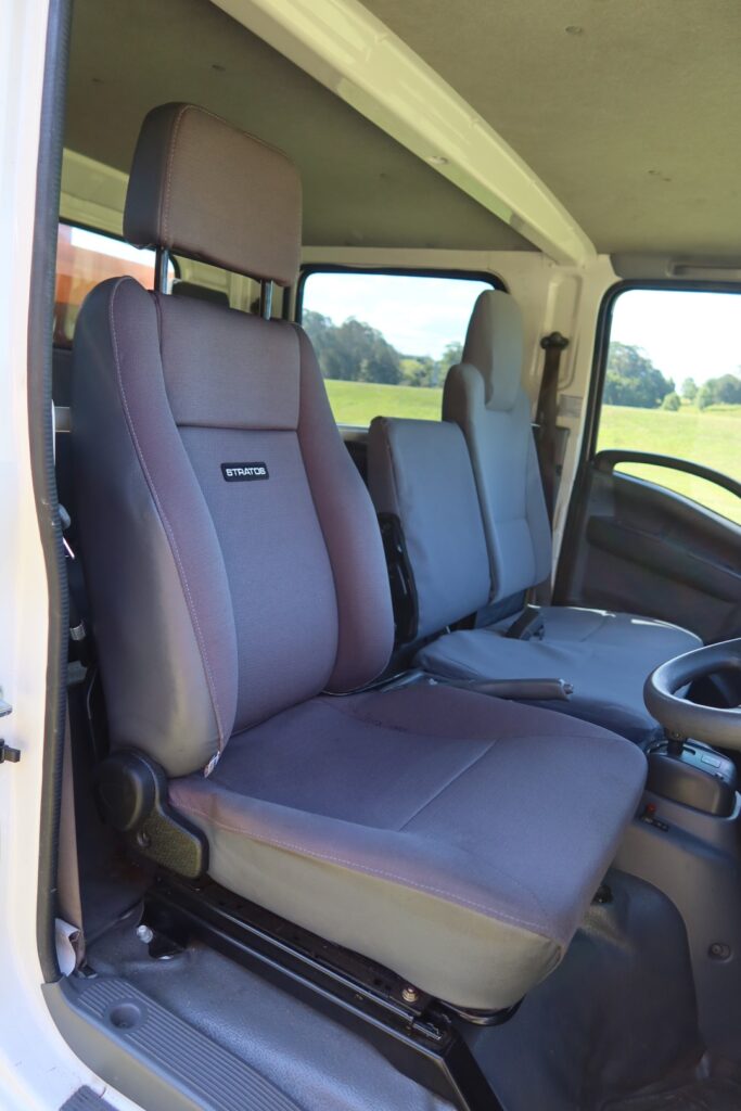 1 x only used 11 / 2019 Isuzu NPR 65-190 AMT Crew Cab (Dual Cab) – 5.2 litre, turbo / intercooled, 190hp, 6 speed Automated Manual Transmission (AMT / AUTO / AUTOMATIC) inc air conditioning, a Stratos suspension drivers seat and rubber floor mats.