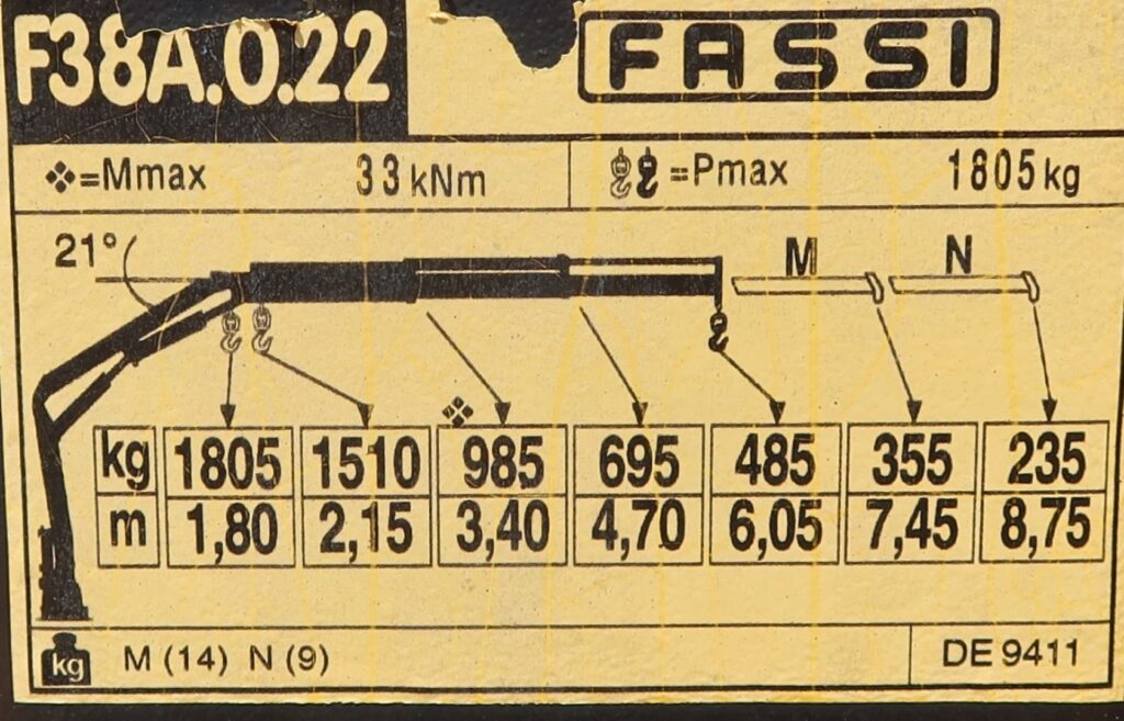A 2014 Fassi F38A.0.22 Active crane (2 x extensions)