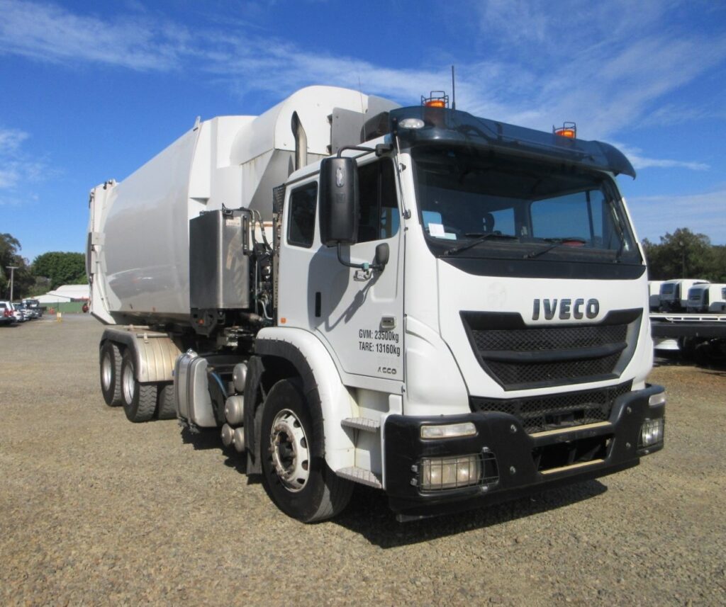 2018 Iveco Acco 2350 AUTO 6×4 – 29 CUBE BUCHER SIDE LOAD GARBAGE COMPACTOR