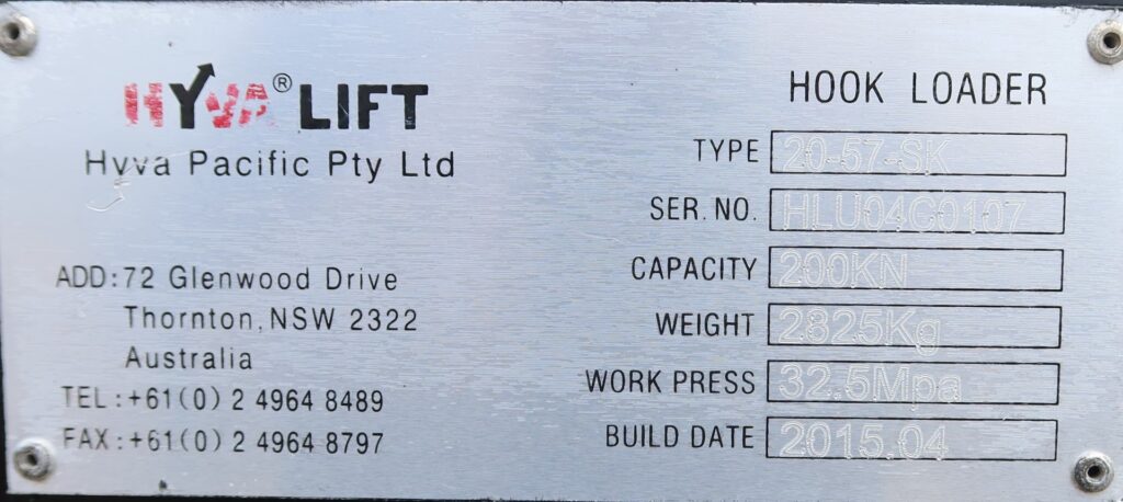 Fitted with a 2015 Hyva-Lift 20-57-SK HOOKLIFT (Hook Lift) BODY inc;